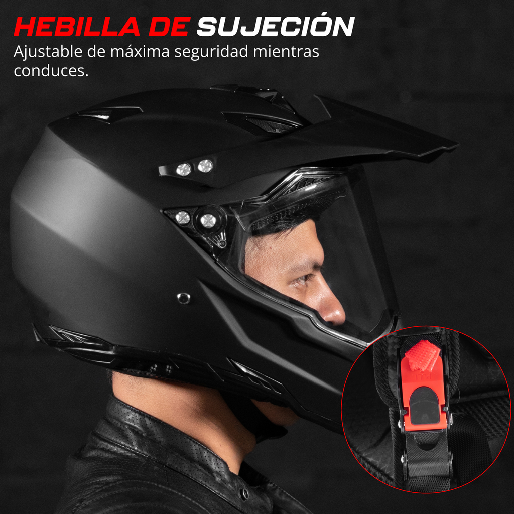 HEBILLA DE SUJECIÓN. Cuenta con una hebilla ajustable de alta calidad que garantiza máxima seguridad mientras conduces por la carretera, la calle o la autopista.